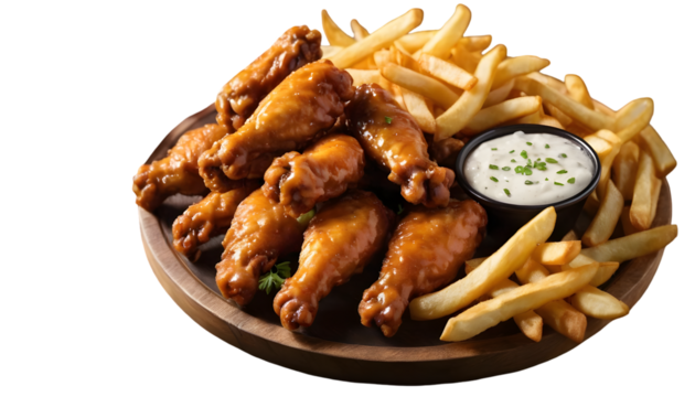 prato com macarrão ao molho branco com brócolis e bacon isolado em fundo transparente - Fettuccine ao molho branco