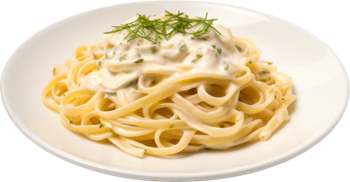 cream white sauce spaghetti cabonara isolated on white or transparent background,transparency