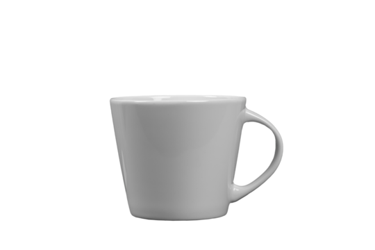 eine weiße freigestellte Tasse auf transparentem Hintergrund