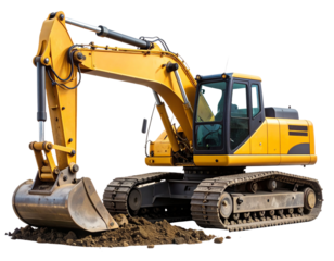 Excavator with Raised Arm and Full Cabin View – Angled Perspective Isolated
