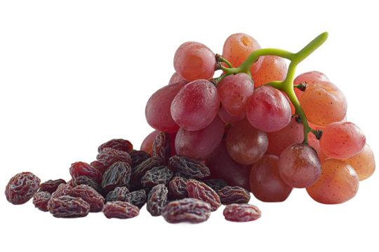 Grapes drying process to become raisins isolated on transparent background