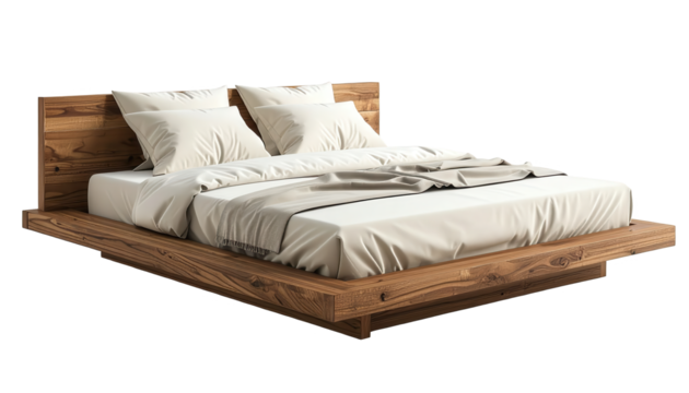 Modern luxury bed with white linen and pillows PNG set with isolated on transparent background
