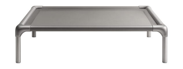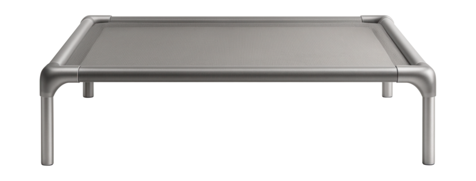 Elevated dog bed with mesh, ideal for keeping pets cool on a porch.