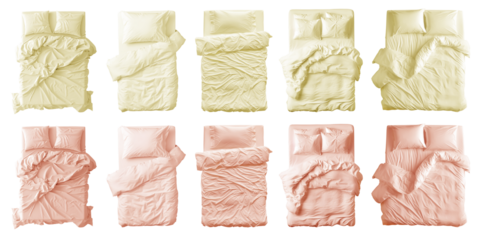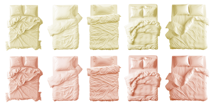 bed top view cut out transparent isolated on white background PNG file artwork graphic design.