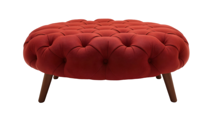 Tufted Red Ottoman Stylish Accent Piece with Wooden Legs.