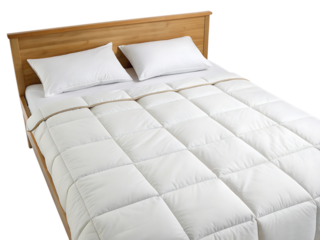 a bed with a dirty bed cover and pillows cutout background isolated on white background ,PNG.AI Generated.