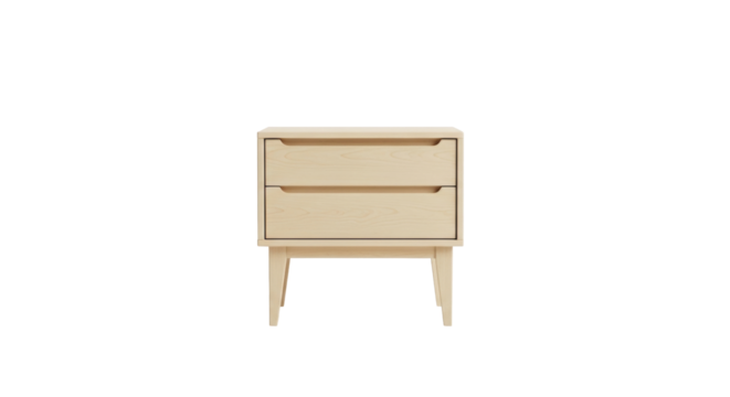 Isolated modern Scandinavian-style two-drawer nightstand cabinet for bedroom storage