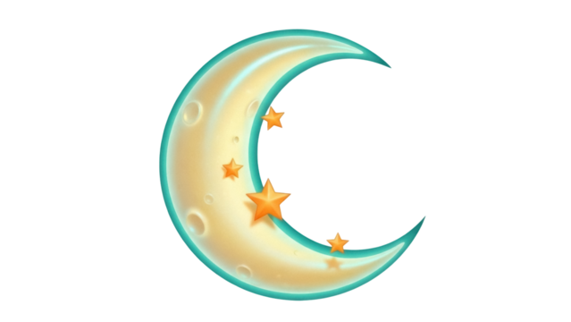 Isolated crescent moon and stars with teal edges for baby, children and nursery designs