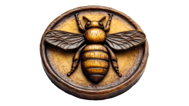 3D wooden honey bee carving, isolated, cut out transparent