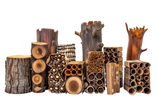 Bees emerging from nest forest wildlife natural habitat isolated on transparent background
