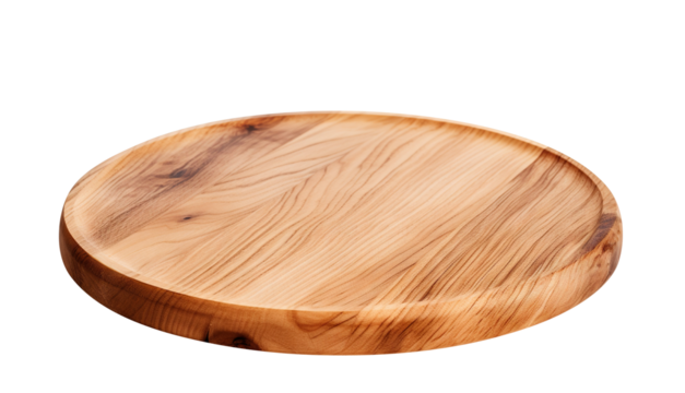 Circular Wooden Cutting Board with Grooved Edge and Grain Texture.