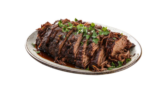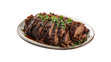 Sliced Braised Beef Brisket with Herbs isolated on a transparent background