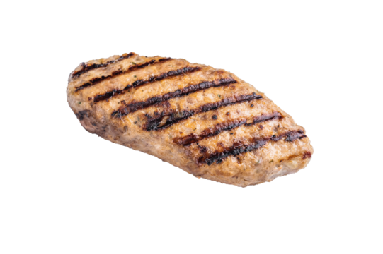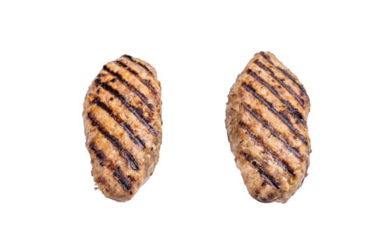Close up of succulent grilled kofta kebabs or kebaps, showcasing rich spices and a tantalizing golden-brown crust. isolated on white background. top view