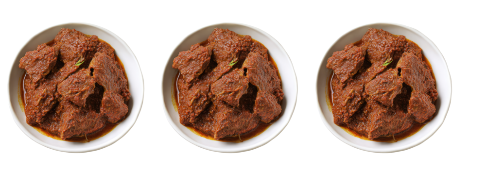 Indonesian Beef Rendang Bowls, Isolated on Transparent Background, Perfect for Recipe Websites or Food Marketing