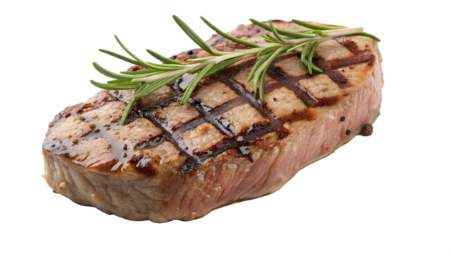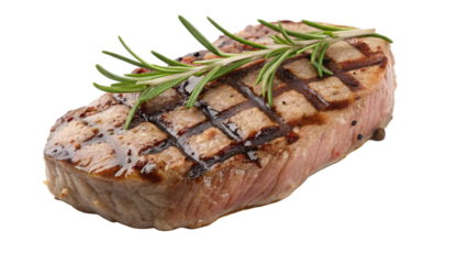 Generative Ai has created an image of a grilled beef steak with rosemary isolated on a transparent background