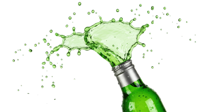 a glass of beer with splashing water cutout image and isolated on transparent background