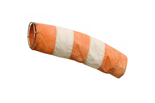 Windsock showing wind direction for aviation safety, indicating weather conditions at an airport or airfield with transparent background