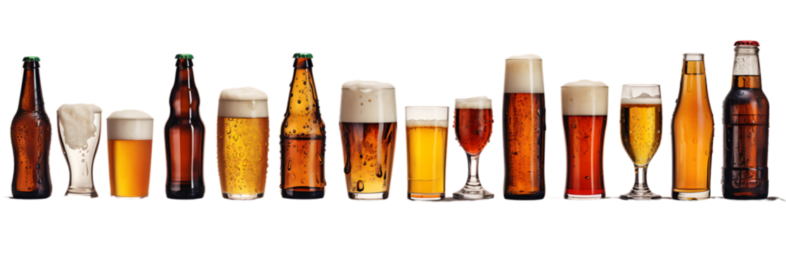 Craft beer bottle and brewed mug with transparent background