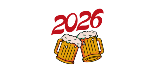 A festive image featuring two beer mugs and the year 2026 prominently displayed