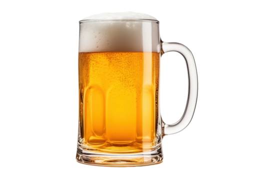 Isolated Glass of Beer: A filled beer glass isolated on a transparent background, showcasing its golden color and frothy head, great for brewery advertisements and beverage illustrations.