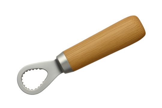 Classic bottle opener with wooden handle, isolated on transparent background, ready for easy integration into designs