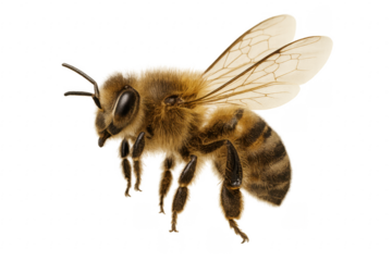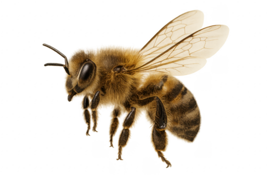 Close-Up Views of Honey Bees in Various Poses and Angles, isolated on transparent background