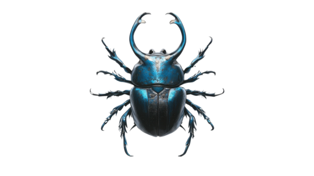 Iridescent beetle isolated on transparent background, colorful insect with metallic sheen for biology and entomology studies