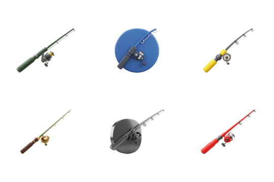 Fishing Rods Collection: A diverse arrangement of fishing rods, capturing a variety of designs, colors and styles, each one poised for the angling adventure that awaits.
