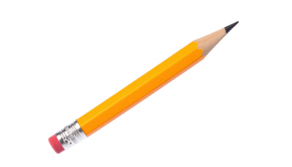 A close-up of a yellow pencil with a pink eraser, isolated on black