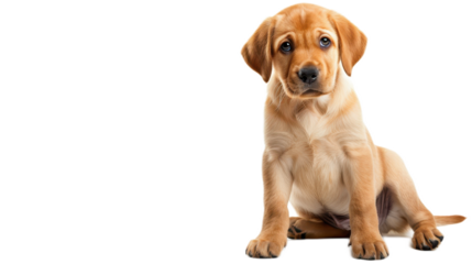 Adorable Sitting Labrador Retriever Puppy with Soft Fur and Expressive Eyes on a Plain Background