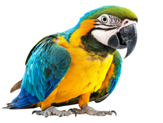 Parrot perched isolated on transparent background, PNG file, colorful feathers