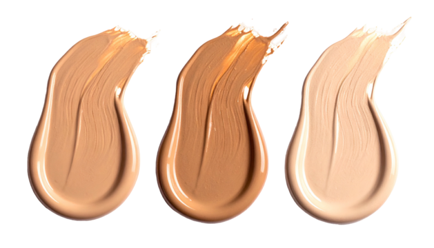 Swatches of skin-tone foundation in varying shades, against a black background