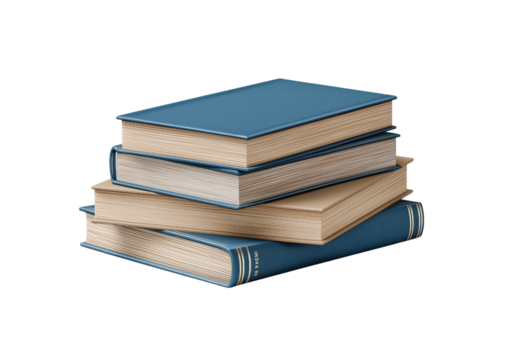 Stack of six hardcover books isolated on a transparent background