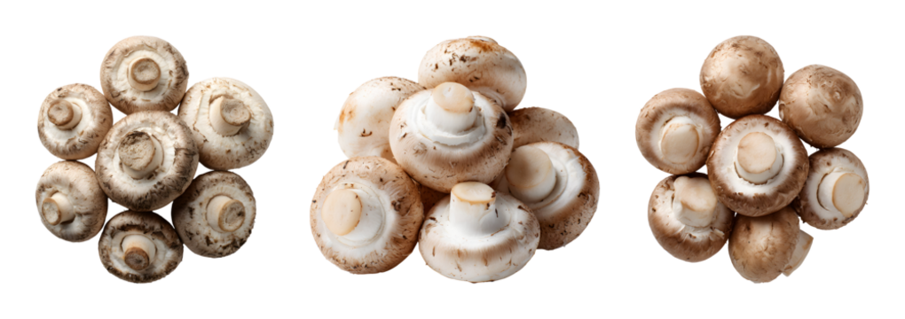 Brown mushroom and cross section showing gills isolated on a transparent background