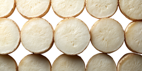 Light beige cylindrical objects arranged in rows and columns