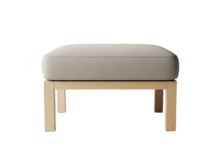 Modern minimalist beige ottoman with wooden legs, perfect for home decor and interior design, isolated on transparent background