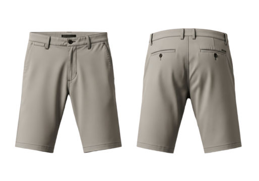 Stylish beige chino shorts, front and back view, perfect for modern casual wear and summer fashion.