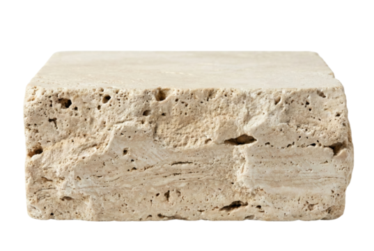 Six beige stones are arranged on a white surface, creating a simple and clean composition isolated on transparent background