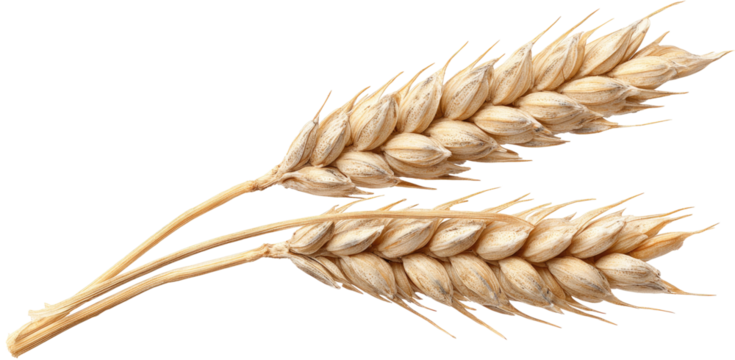 Two wheat ears, light beige color, detailed structure