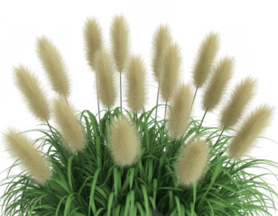 Pampas grass with green stems and beige plumes isolated on a transparent background