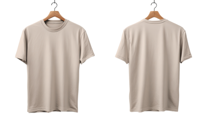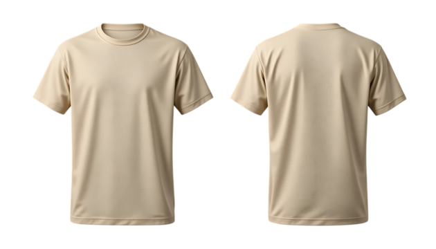 Beige empty blank front and back side t-shirt mockup png