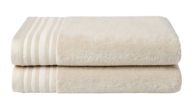 3d model of bed with beige and brown fabric, transparent white background, front view
