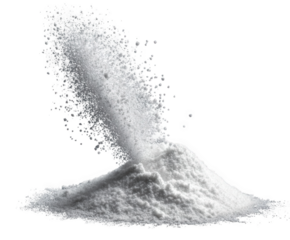 A pile of white powder is being poured, creating a cloud of dust against a transparent background, isolated on transparent background