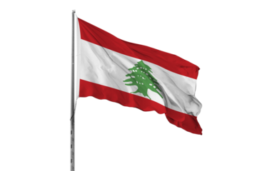 Waving Lebanon country flag, isolated, white background, national, nationality, close up