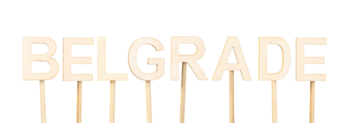 Name of Belgrade, capital of Serbia, formed with wooden letters