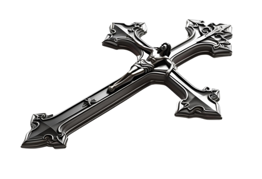 Metal Christian cross isolated. Religious symbol for faith-based design display.