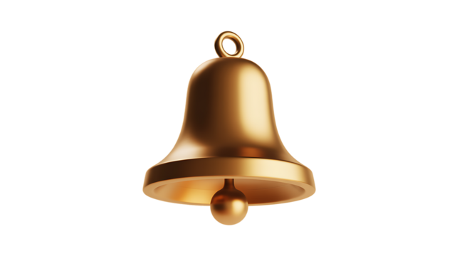 Golden 3d bell symbolizing notifications, alerts, and reminders with a shiny surface. Background is clear