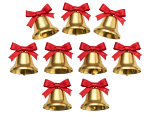 Christmas celebration bells with red bow on transparent background