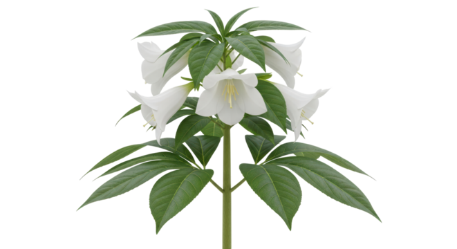Isolated flower of Campanula takesimana, Korean bellflower, with trumpet-shaped white bloom