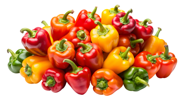 Vibrant bell peppers in a colorful pile, a fresh and healthy choice, perfect for culinary projects and healthy eating campaigns, a delicious visual